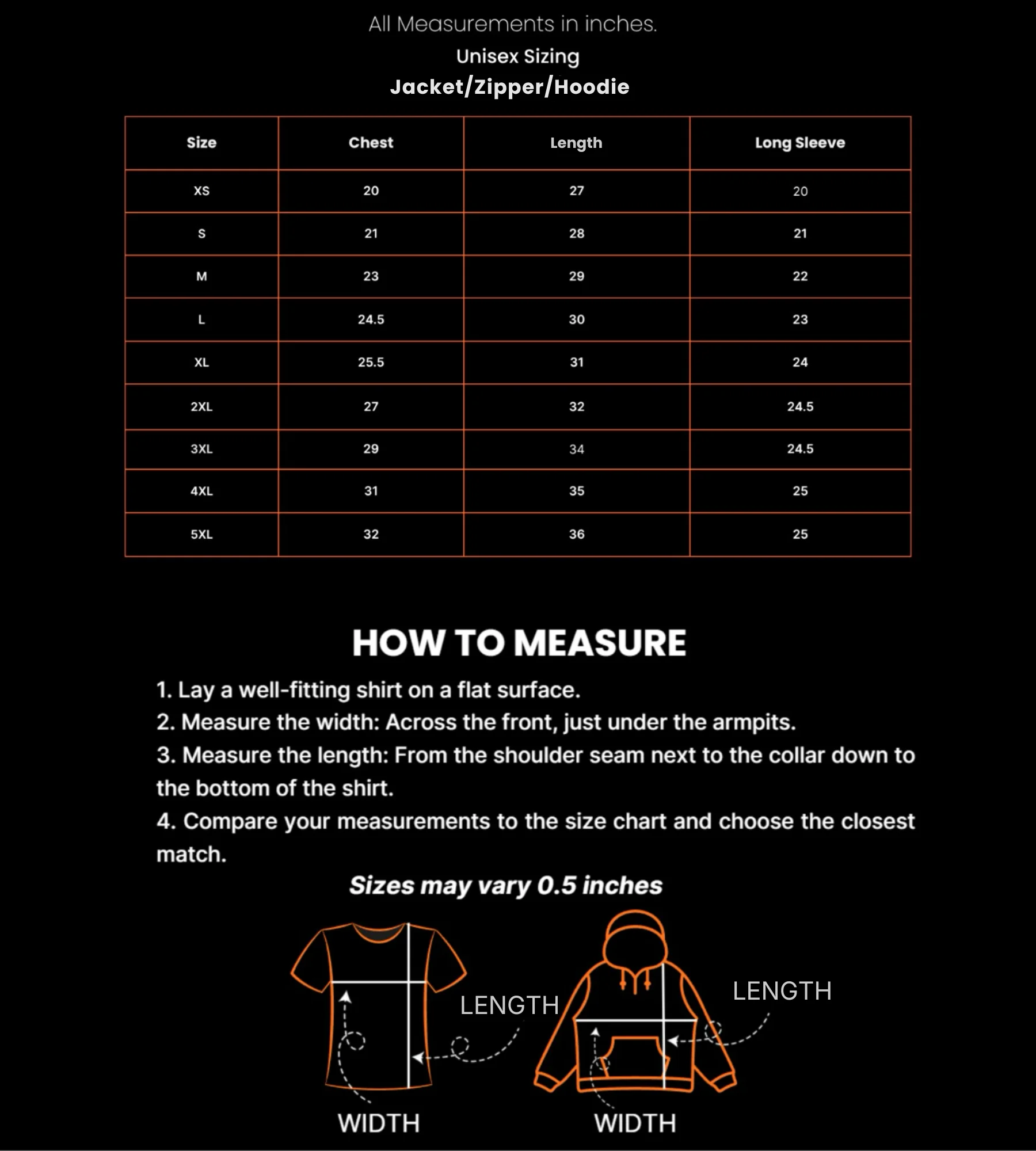 Unisex's Jackets/hoodies Sizing
