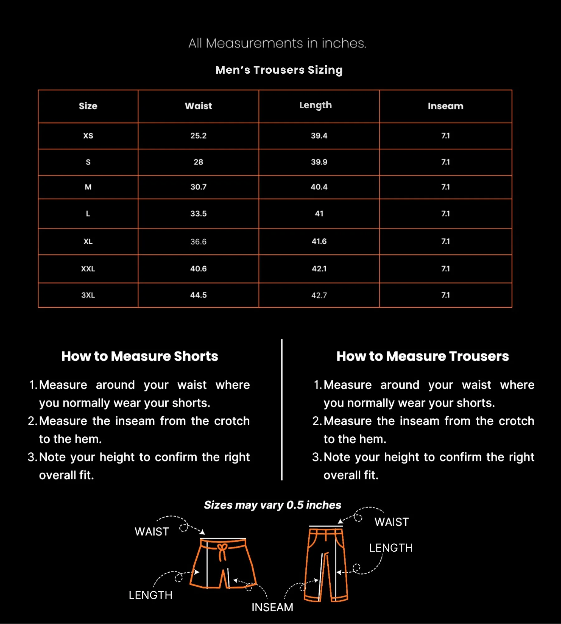 Men’s trousers sizing