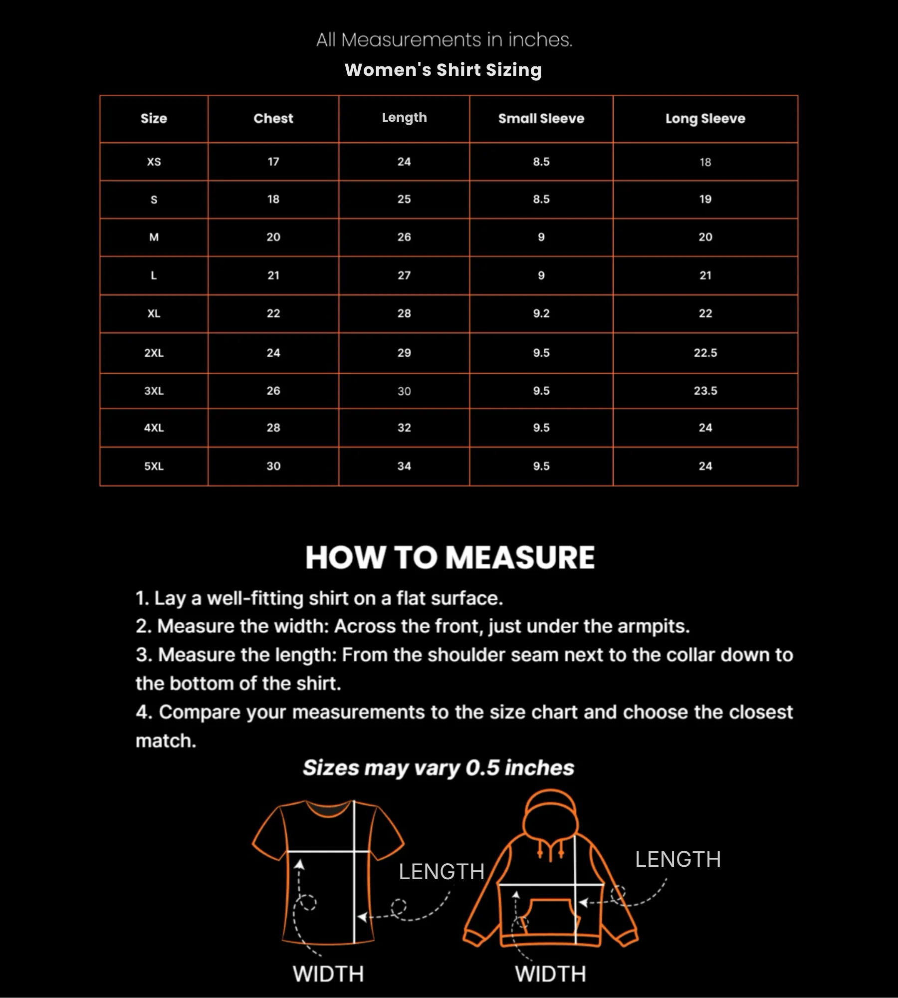 WoMen's Shirts Sizing