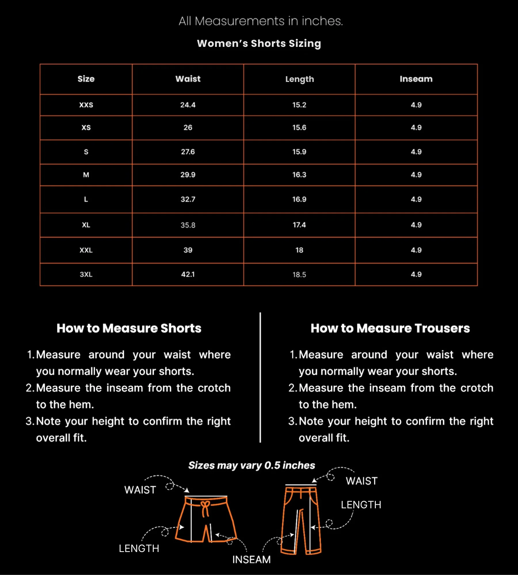 women’s shorts sizing