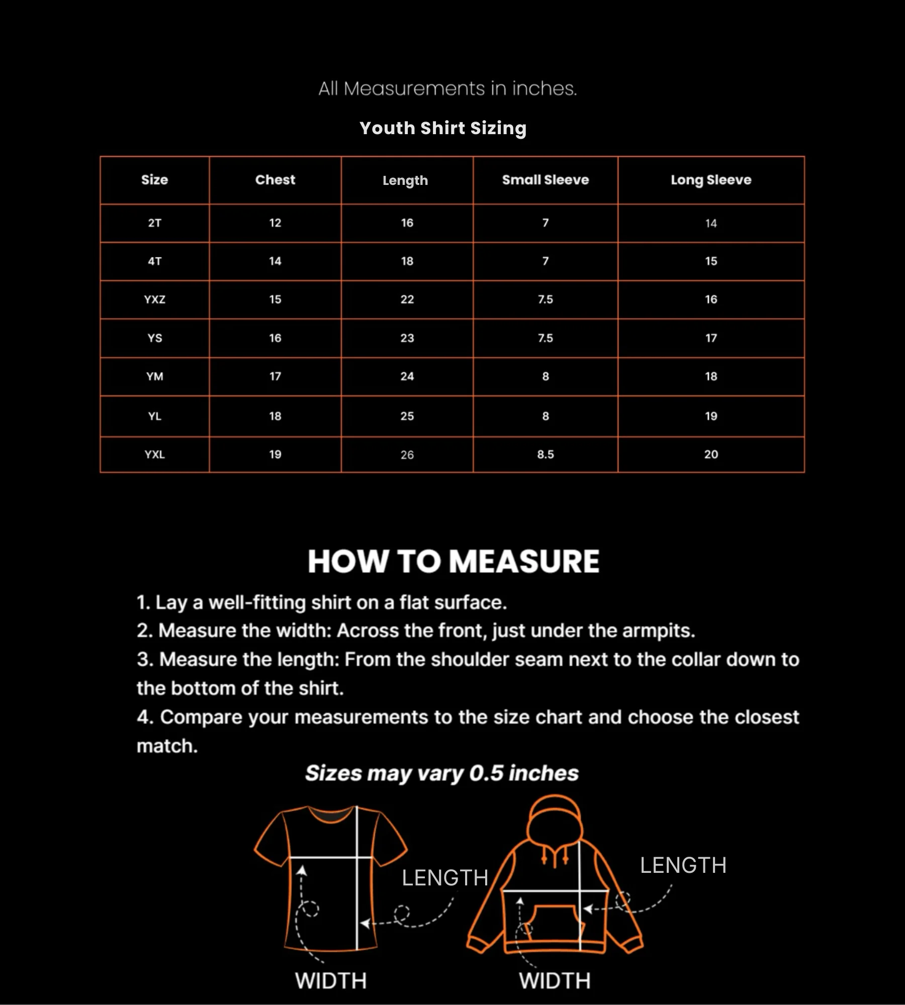 Youth shirts Sizing