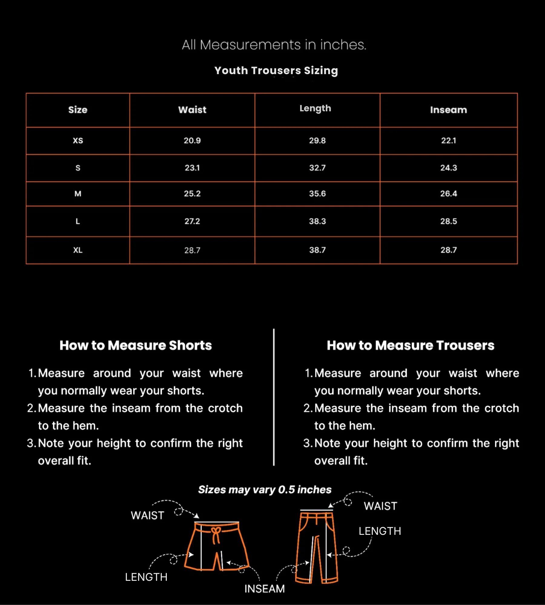 Youth trousers sizing